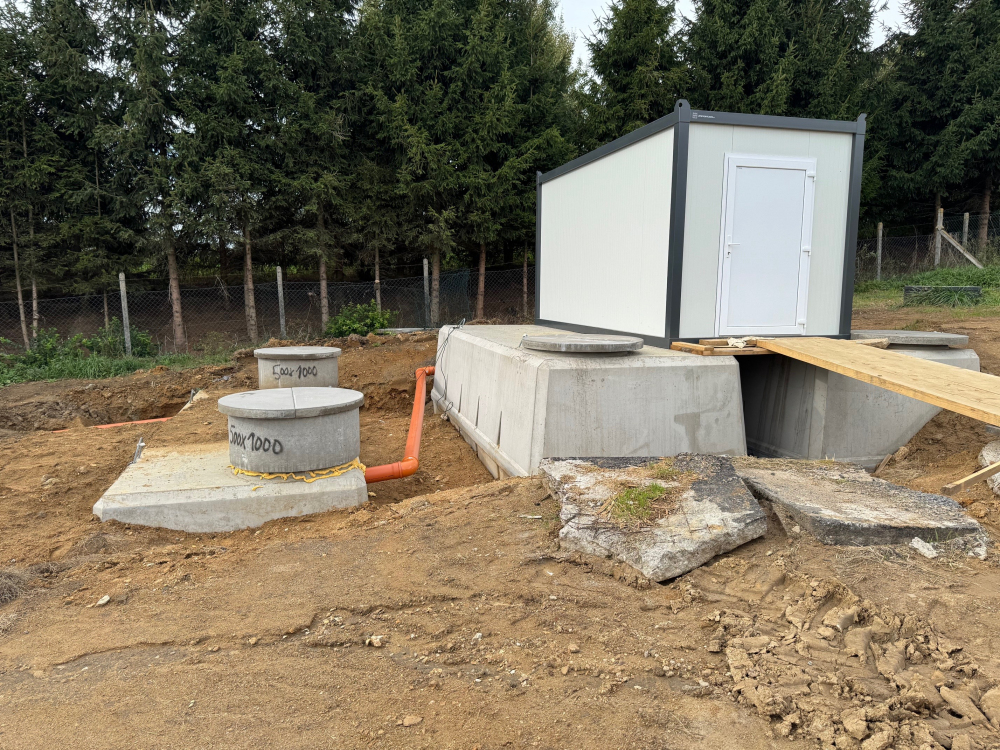 - akumulace filtrované vody v 2 x 25m3 - nové podzemní monolitické zesílené betonové nádrže, které složí zároveň jako základová deska pro technický domek 5x2,4 x 2,6m + odpadní kalová nádrž 25m3 na prací vodu se vsakem do jámy 3x3x3m + automatizace hladinového plnění nádrže